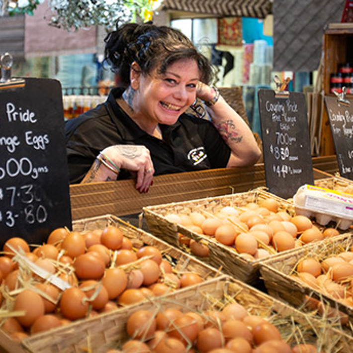 South Melbourne Market banned the sale (and use in cafes and restaurants) of caged eggs in 2014. All traders selling (or using) eggs at the Market are required to clearly label the bird density of the farms in which their eggs originate as well as identify products as barn-laid, free range or organic.