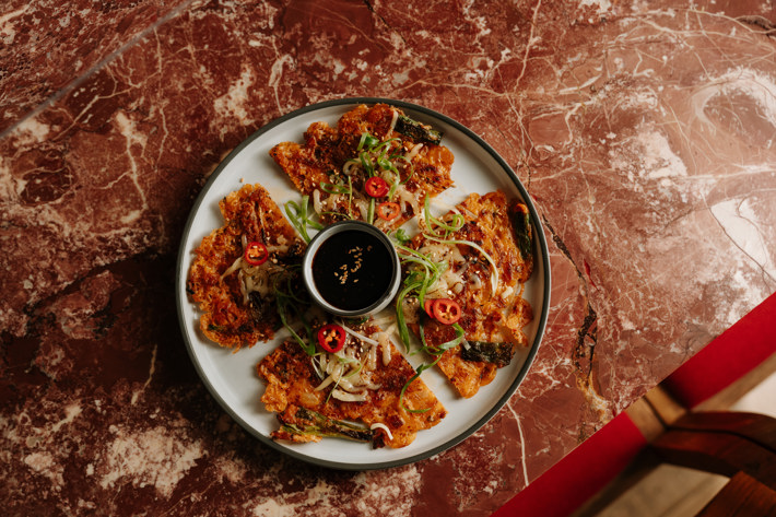 - Bambu Asian Eating House - Kimchi Pancake with Mozzarella served with Caramelised Black Chilli Soy Vinaigrette.