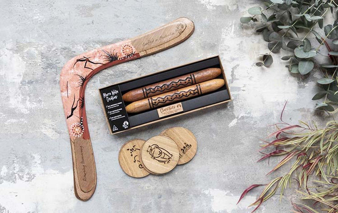 Everything Aussie (West Aisle) have locally made Murra Wolka boomerangs which are authentic to culture and support Aboriginal families. Murra Wolka Creations are a fourth generation family business who aim to make products they would be proud to take home.