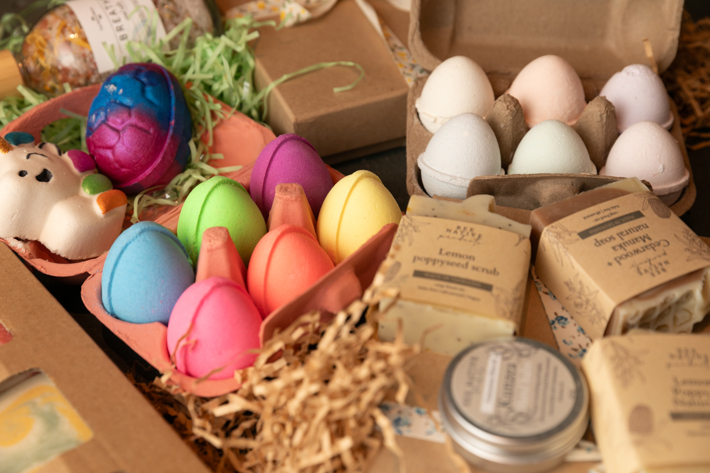 Easter egg bath bombs and shower steamers from Coconut Revolution.