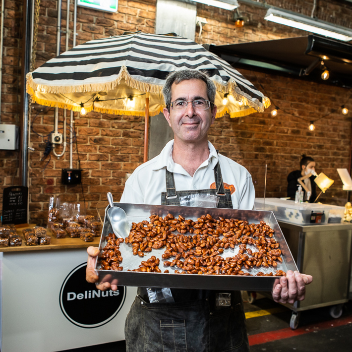 DeliNuts (Centre Aisle) roast and caramalise fresh nuts every Market day - so delicious you can smell them from a mile away.