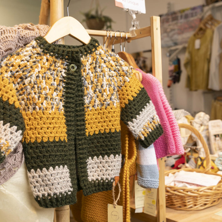 These questions are at the forefront. Items are made predominantly from natural materials such as bamboo, linen, cotton and wool. Entwined with the stall’s social approach, is care for the natural environment. Irem prioritises visibility of working conditions and methods. One benefit of this, is that it enables her to minimise waste. She shows us a durable corduroy bag cut from a pattern without any excess, face cleansing pads made out of leftover fabric, and small items designed in response to surplus threads. Currently the stall is selling a collection of super-soft bamboo cozy wear that comes in natural earthy hues. Irem explains that most of these were dyed with vegetable dyes in her home kitchen. She collects remnant onion skins from fresh produce traders at the Market to achieve the golden shade and has plans to experiment further with new shades of biodegradable dyes.