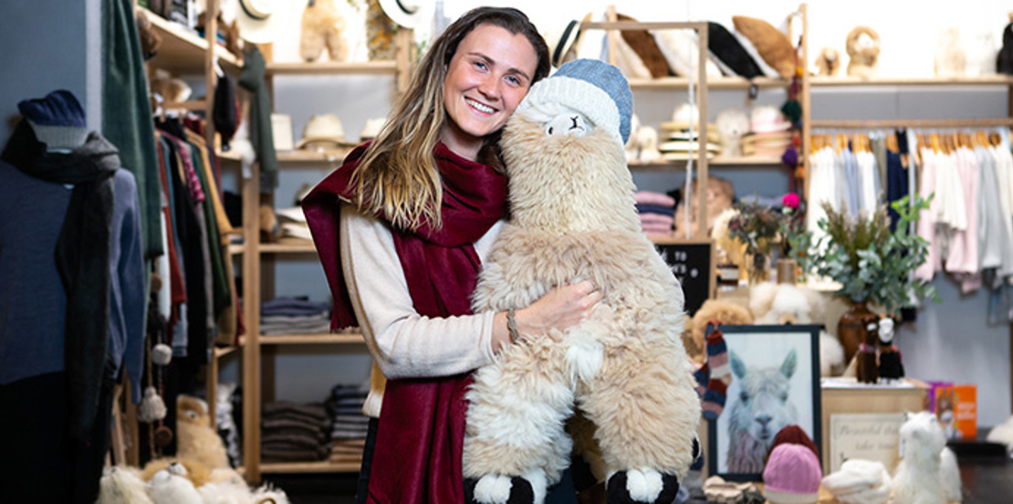 Passionate about sustainability and “slow” fashion, Sophie loves chatting with customers about her team of artisans and the qualities of alpaca fibre, which is snuggly and warm in winter but light and cool enough to wear in summer too.
