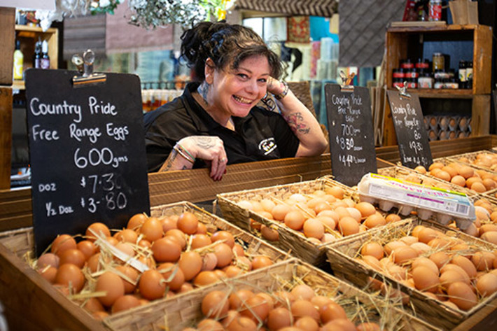 Born and bred in the City of Port Phillip, her father and brother had a butcher shop in the market in the 80’s. At the age of 18 she was approached by market management to start an egg stall and started with just two trestle tables and a few boxes of eggs.