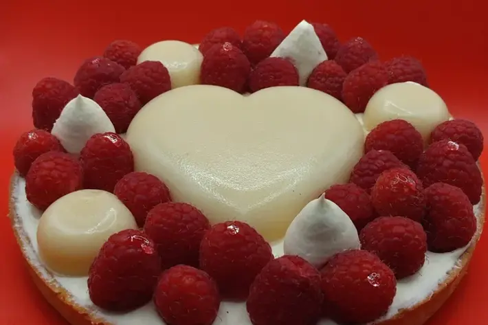 The whole family will love this delicious lychee heart tart from Agathé Pâtisserie.