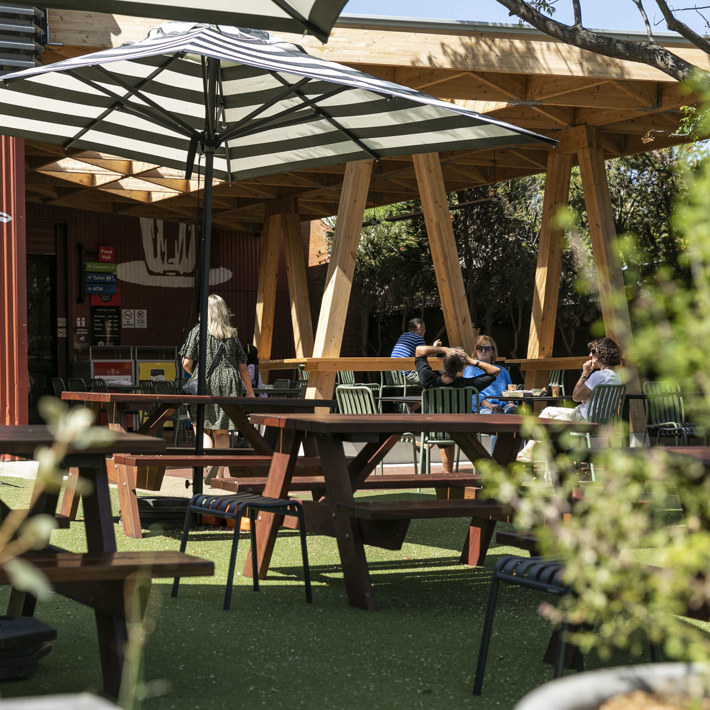 The new, permanent alfresco dining space sees increased seating and space for our community to catch up with friends and family while also doubling as an activation and event space to host live entertainment, family activities and community events.