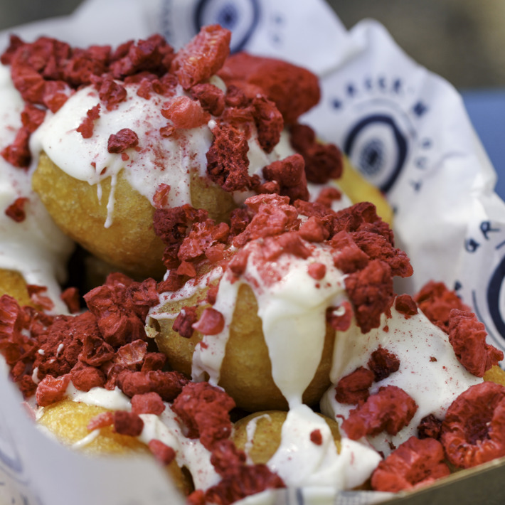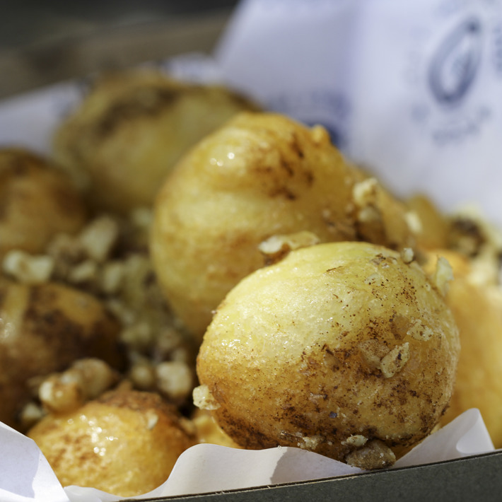 The Greek'n Out kiosk has been transformed into a coffee and donut bar specialising in Loukomades. These Greek donuts are traditionally served soaked in hot honey syrup, sprinkled with cinnamon and garnished with chopped walnuts or toasted sesame seeds (which are on offer). However, Greek'n Out has also put a spin on this classic with a handful of modern flavours including milk chocolate and pistachios, white chocolate with cookies and cream, and white chocolate with raspberry. Wash these sweet treats down with a traditional Greek coffee served hot or over ice. Yum!