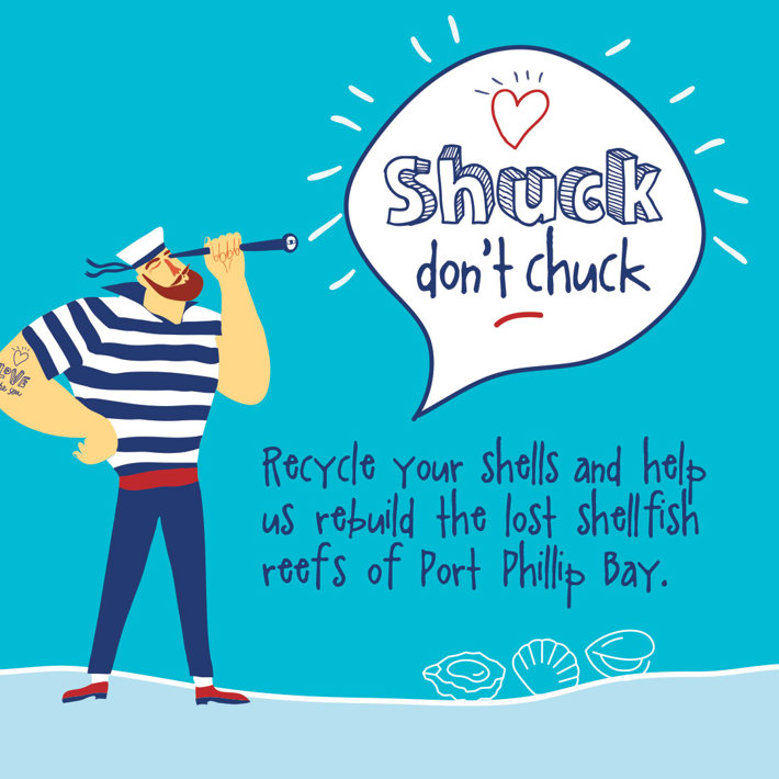 Oyster, mussel and scallop shells are collected from the Market, cured and then used in the reef restoration project aimed at rebuilding the precious ecosystems in our local Port Phillip Bay.