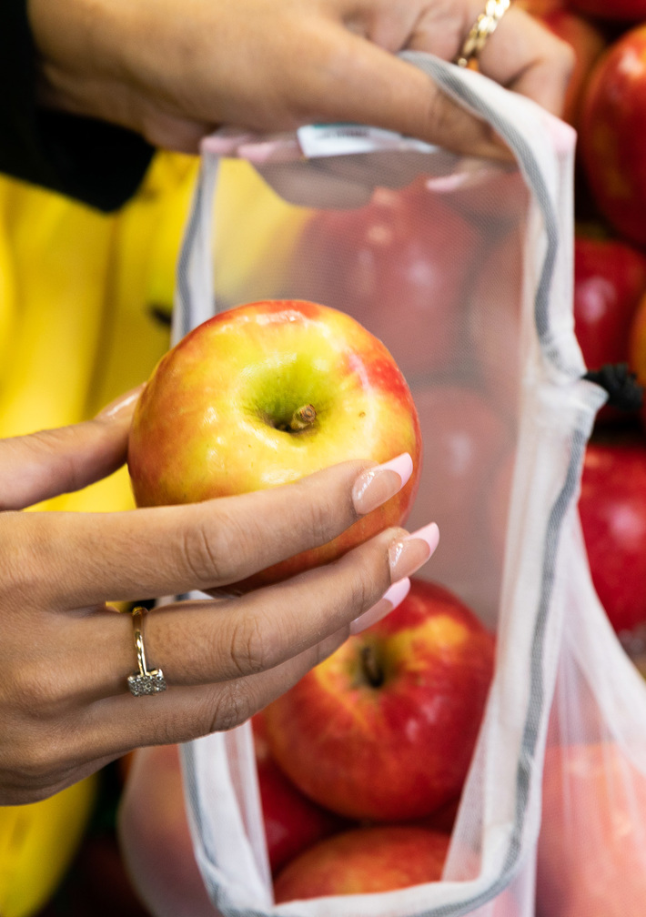 Some reusable bags are designed to help keep fruit and vegetables fresh in the fridge. The Market’s recycled plastic mesh bags keep your produce fresh by allowing it to breathe.