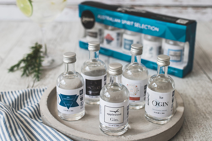Gintonica (SO:ME Space) - An Intro to Aussie Gin 5 Pack (5 x 50ml) a selection of gins from different states and territories to offer a true taste of the Australian craft gin industry. Some are made using classic botanical ingredients, others with many Australian botanicals, $49.95.