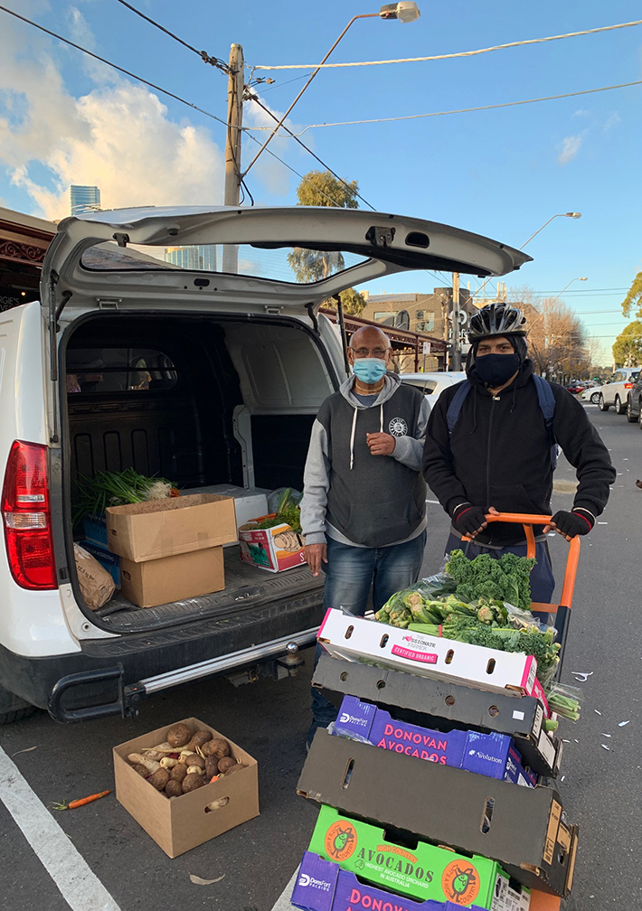 Every Sunday, produce is collected from the Market by Hare Krishna Melbourne who provide ongoing and exceptional support with transport and deliveries as well as cooking around 5,500 weekly meals in their Albert Park The Food For Life Kitchen.