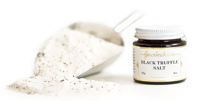 Gewürzhaus make white and black truffle salts from Italian white alba truffles available loose at $12.20 for 20 grams or $32.95 for a 40gram jar. Try their recipe for Seared Scallops with Black Truffle Salt, Cauliflower Purée & Kale Crisps.