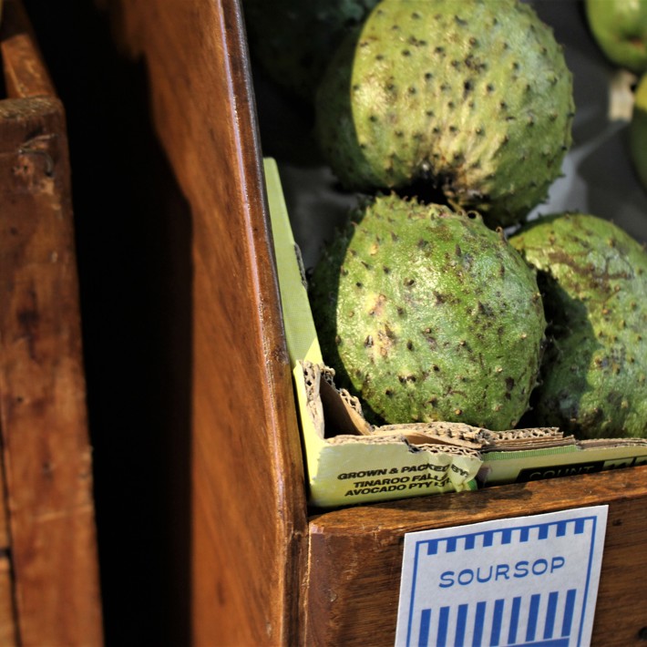 One of the more unusual winter finds at the Market is Soursop, with its spiky green skin and creamy white flesh, is a tropical fruit (but typically imported to Australia during the cooler months) with a subtly sweet and tangy flavour.