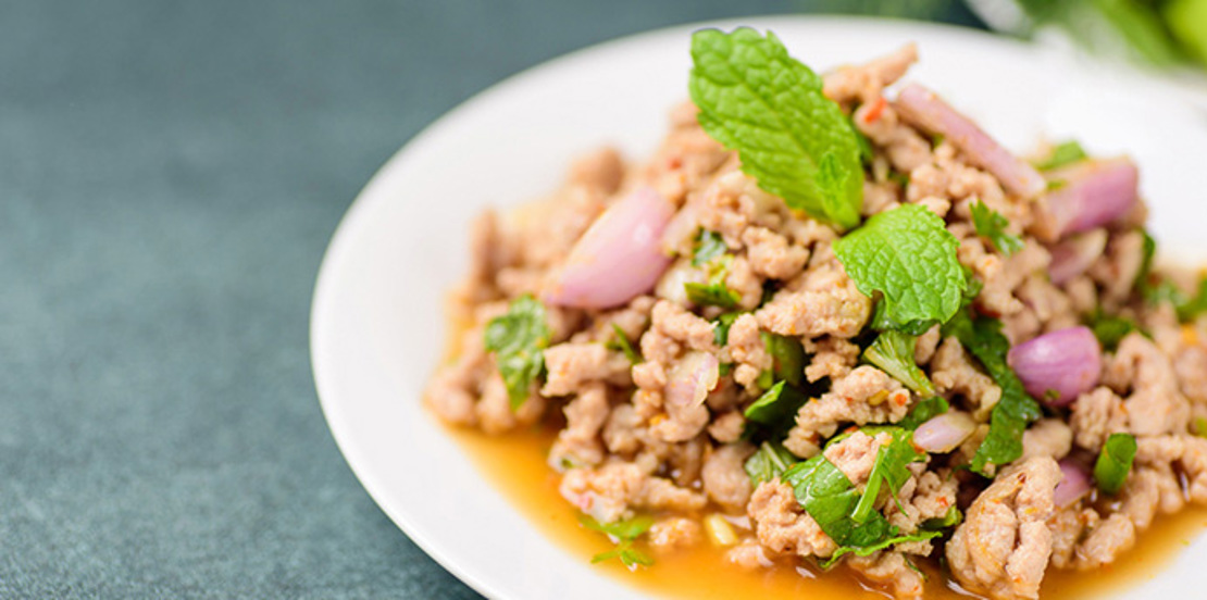 Larb Khua Gai (Minced Chicken with Shallots, Coriander and Fried Garlic)