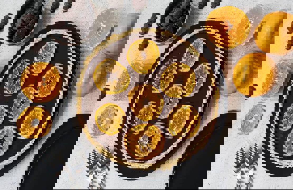 Make the most of this winter's seasonal fresh mandarins with this delicious, decadent Salted Chocolate Mandarin Tart, topped with candied mandarin from our friends at A Better Choice!. For especially sweet and juicy mandarins, we recommend the Honey Murcott variety, available now at the Market's fruit and veg traders.