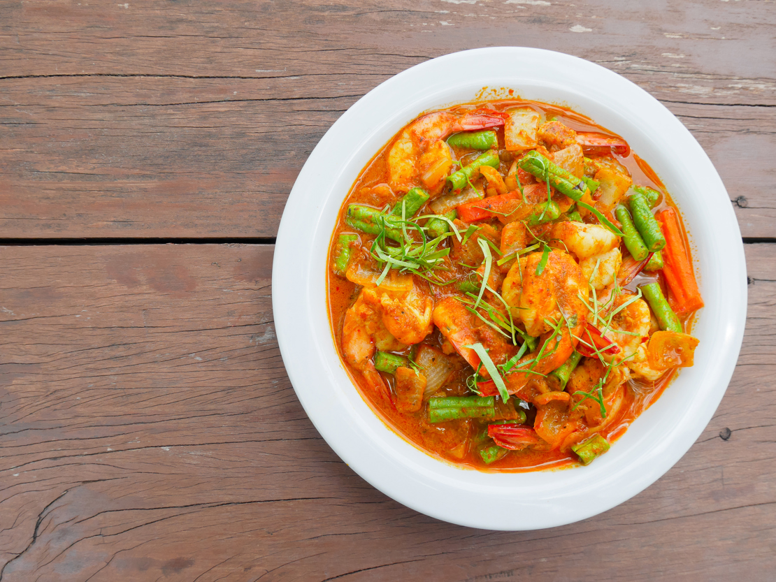 Add the fish and seafood and simmer gently for 3 to 5 minutes with the lid on the pot. After 3 to 5 minutes the fish and seafood will be cooked and your curry is ready to serve.