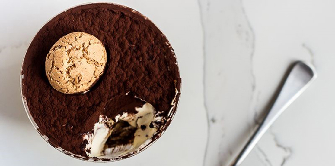 - Into little containers, put a large spoon of cream, cover dark cocoa, add 2 half pieces of lady finger biscuits dipped in espresso coffee, then add 3 half pieces on top.