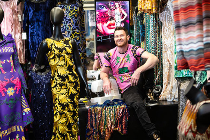 His casual and formal designs are unique, fun and affordable with most pieces hand sewn inside the store. If you love detailed trims, original prints and faux fur, then you'll love Aron's designs.