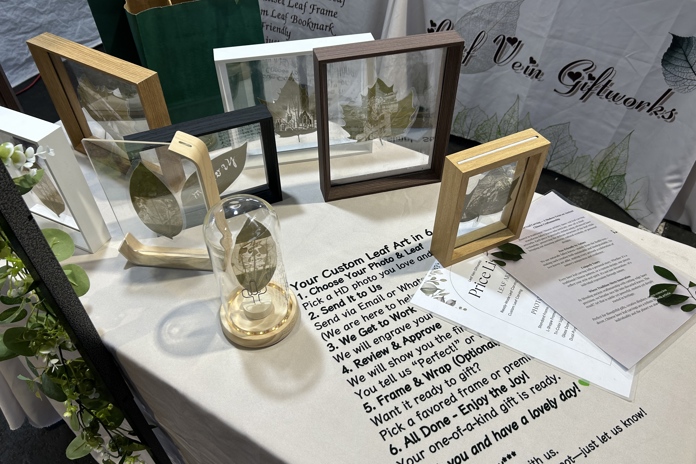 What truly sets them apart is their on-site custom engraving service using real leaves and environmentally friendly laser carving technology. You can bring you favourite photos, names, quotes, or special dates, and they will carve them live onto real leaves within minutes. Each piece becomes a personal keepsake, deeply memorable and one-of-a-kind.
