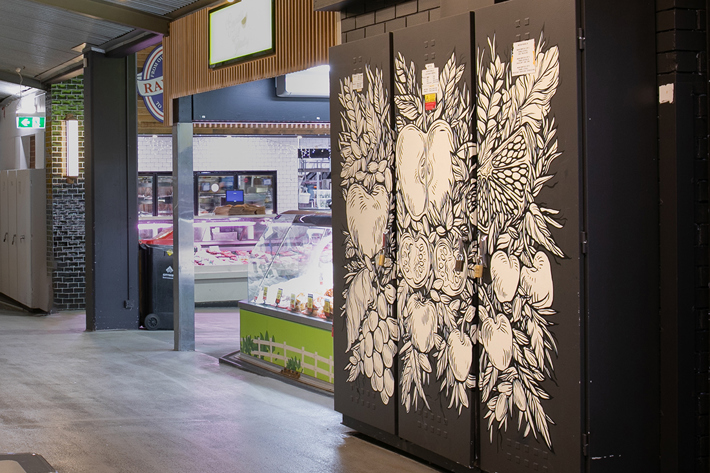 Following on from the 150th Anniversary Mural Project, the Market has worked with a series of artists to deliver a continuing program of public art, read on for more information on the artists and their works.