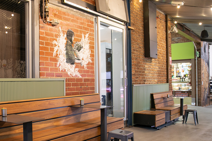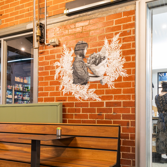 Painted in black and white, the artwork’s design is a modern interpretation of antique botanical etchings, where the mural invites the community to reflect on the timeless allure of shopping locally for hand-picked produce - where every item has been harvested, transported to the Market and individually selected by the shopper to take home for their kitchen table.