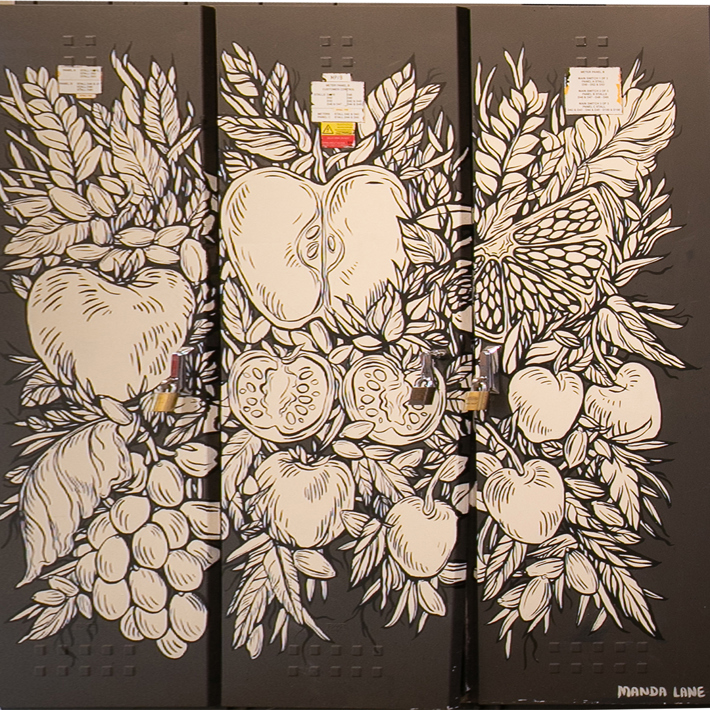 This collaborative work combines Manda Lane’s intricate botanical paper cuts with VKM’s detailed stencil art. Both artists drew inspiration from stalls within the Market, the finished piece encapsulating the interactive aspect of the market experience, which is so much more than just “shopping”